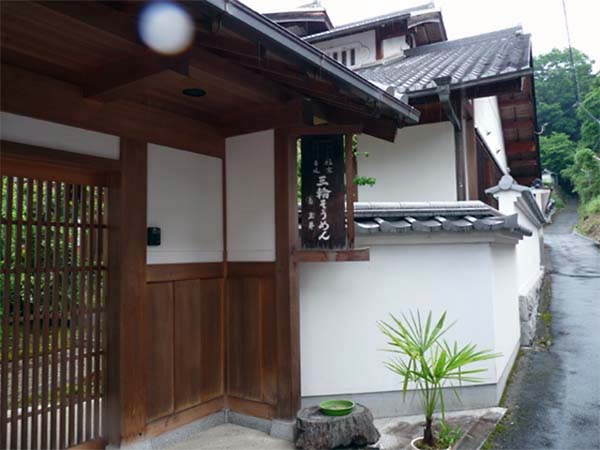 また本道にもどり少し行くと、八坂神社への道標があり、また山側へ入る。 神社への途中に、粋な素麺屋があった。 |