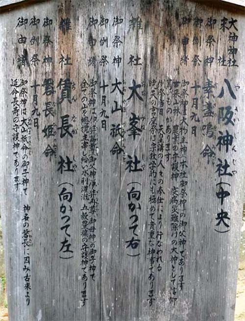 天孫降臨した瓊瓊杵尊が木花佐久夜毘売と結婚するが、磐長姫はそのお姉さんで、父の大山祗が二人いっしょに嫁がせようとしたが、磐長姫はあまりに醜いので送り返されてしまった、という神様。 本殿は、「春日造り」。 |