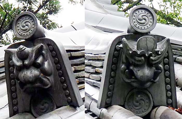屋根にはお寺と同じように鬼瓦がのる。 |
