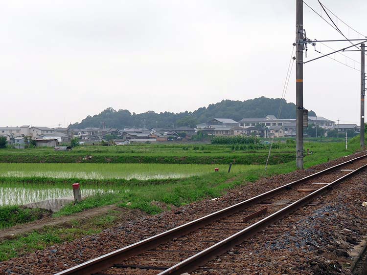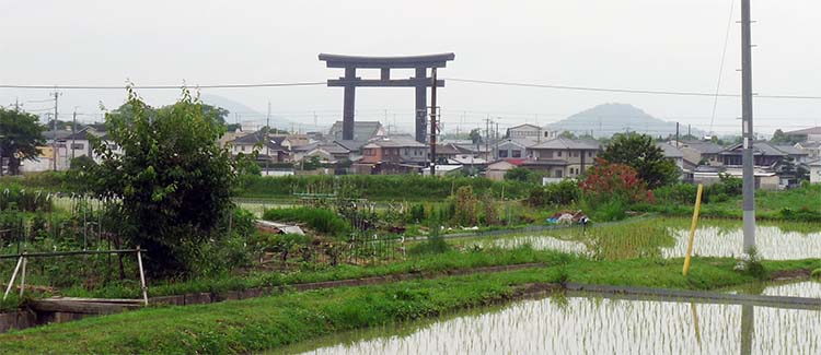 | 恵比寿神社から商店街を抜け、大神神社の参道からJRの線路沿いに箸墓方面へ向かう。 |
