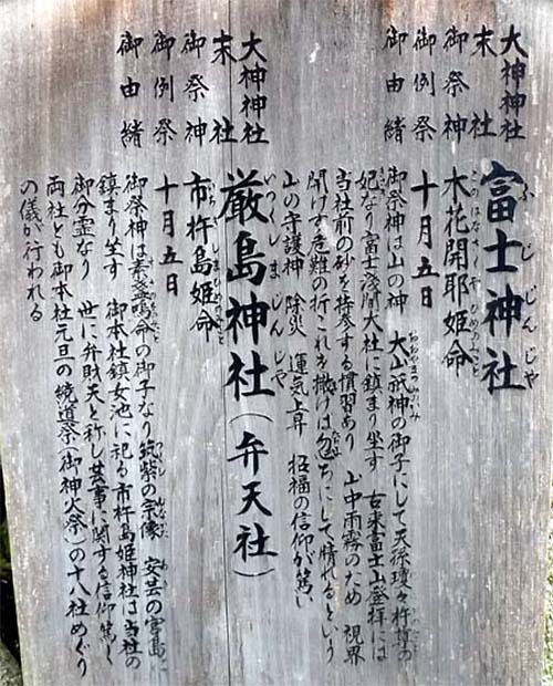 この古墳は、1956年に調査されて、排水溝や奥壁にそって組み合わせ式家形石棺と中央部と玄門部で二棺分の破片と、追葬と考えられる木棺一基の鉄釘が羨道部から検出されている。 ここから茅原の集落に入ると、大神神社の末社の富士神社と厳島神社があり、ガイドブックには「弁天社」に石棺が残る古墳がある書いてあったが見つけることができなかった。 どうも、社の建つ石組みが石室であるらしい。 |