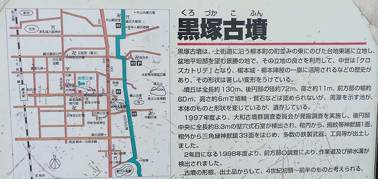 また国道を渡って、行燈山古墳の西へちょっと行くと「黒塚古墳」がある。 |