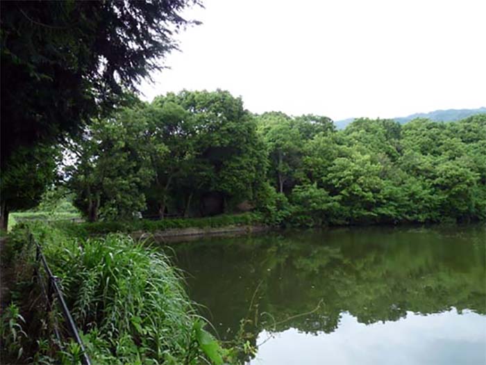 航空写真に見える古墳右下の池の中央に、巣を作ったカイツブリがいた。 |