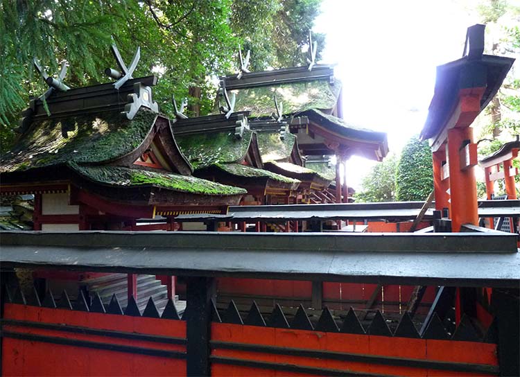 春日造りの春日四神と末社の金毘羅神社の本殿が並ぶ姿は美しい。 |
