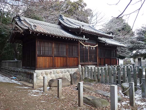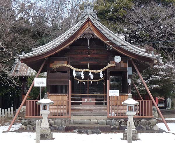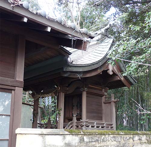 社殿は、南向きに建ち、拝殿・祭文殿・本殿と並ぶ。 拝殿の鬼瓦などに神紋は見られない。 |