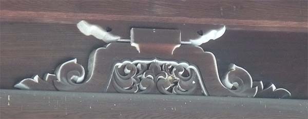 祭文殿の蟇股には、何を象徴しているのか不明だが、飾りがつく。 |