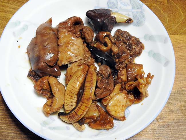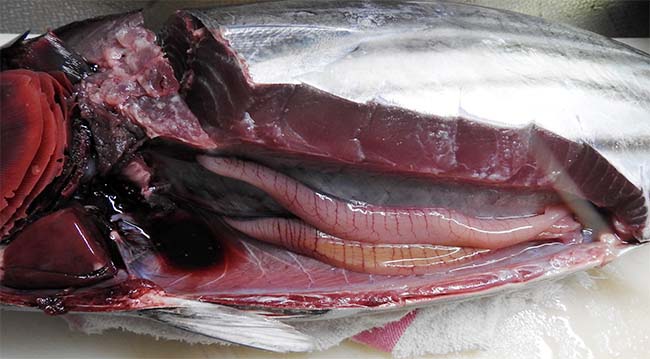 内臓はいつものように煮つけにする。 卵巣がこれから発達するようだ。 |