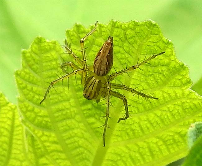 イチジクの葉っぱに「ササグモ」を見つけた。 |