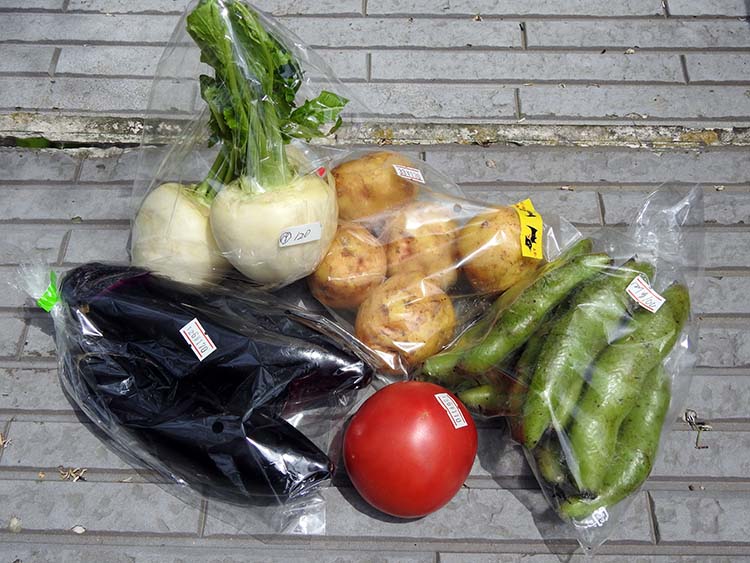 養老院の宿直バイトでいつも通る道路沿いに農家の野菜直売所があって、18日朝、夜勤のバイト明けに寄ってみた。 売っている種類は少ないけど、私の庭の琵琶はまだ青いが、しっかり熟した琵琶があったので購入。1袋150円。 レタスとそら豆は100円。 |