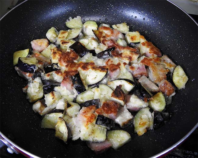 茄子は、ネットで見た、茄子とベーコンととろけるチーズと片栗、小麦粉を混ぜてフライパンで焼く、「チヂミ」のようなのを作ってみたら、茄子の味もいきていて旨い。 |