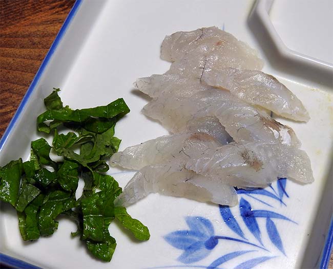 「おいしい魚図鑑」によると、 「秋は深いところへ移って冬をすごし、春になると浅い所へ動き出す。7・8月ごろ、浅い底の石の間に卵を産むが、初夏のころは、ほとんど絶食状態ですごした冬のおとろえを挽回しようと、なまけ者にはめずらしくエサを食べたあとでグッとうまくなる。」 ということで、脂がのって美味い。 とりあえずは、氷水で〆て刺身で。 かなり脂がのっているので、青紫蘇をツマに添えた。 |