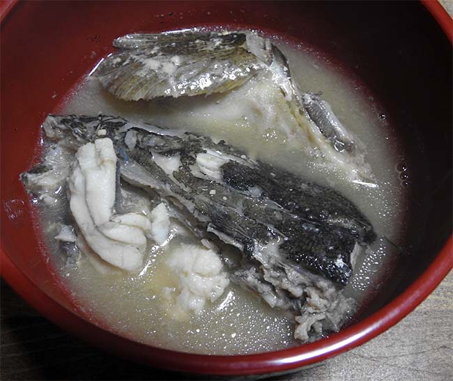内臓も定番の煮付けで、アラは味噌汁で旨い。 |