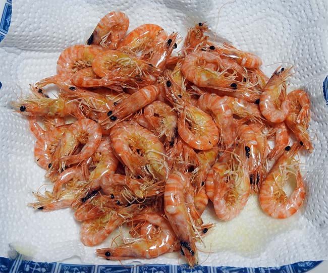 小エビの定番は素揚げ。 塩をちょっとふって、甘味が強く美味い。 |