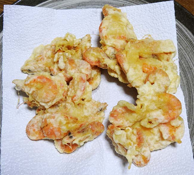 ただ、まるのままだと角(額角)が口内で触り食べにくいので、ひと手間かけて甲の殻だけは剥いてかき揚げにして大正解。 口内のチクチクした食感がなくなり、旨味を堪能できる。 |