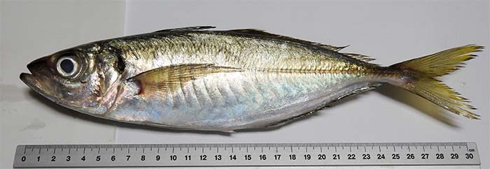 この日は鯵も安かったので購入。 1袋4尾入り1100g、1100円。1尾、30cm、280g。 |