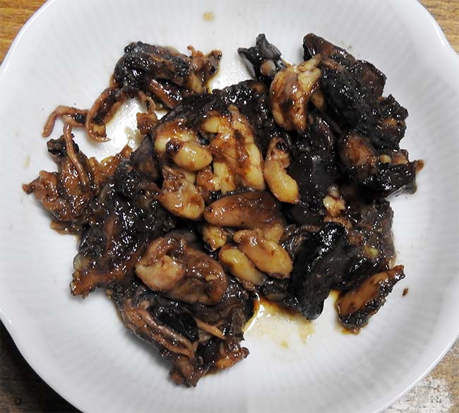 まだ消化されず、きれいなままなので、せっかくだからと内臓と一緒に煮付けにして儲けた気分。 |