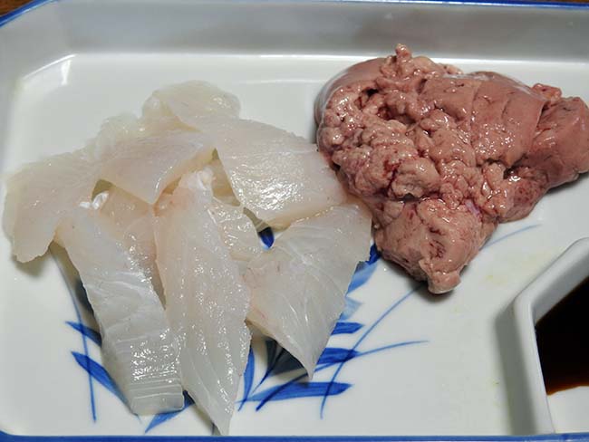 肝臓は濃厚な味わいで旨い。 身はコリコリとして結構旨味が強く美味しい。 |