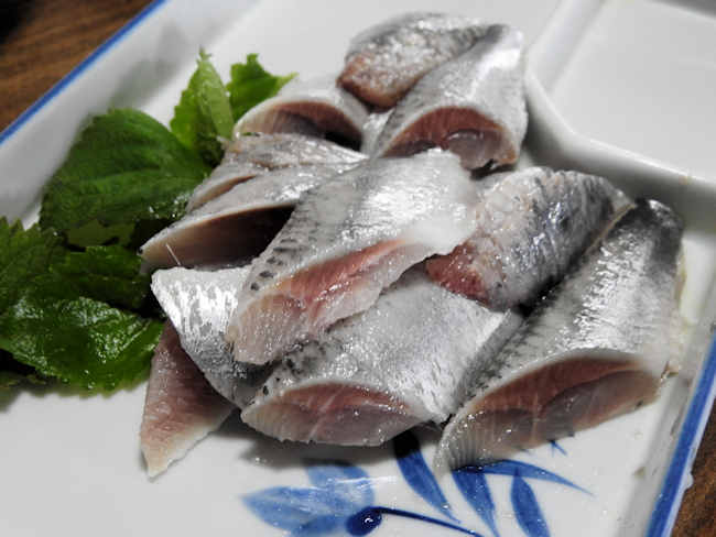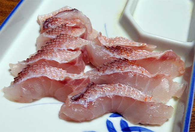 三枚におろして、皮に熱湯をかけて皮つきで刺身にした。 旬は秋~冬、ということで、脂ものってきて、美味い。 |
