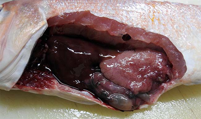 内臓は、卵巣が発達途上。 煮つけて旨い。 |