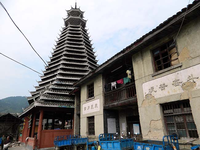 少し離れた集落の鼓楼へ向う。 |