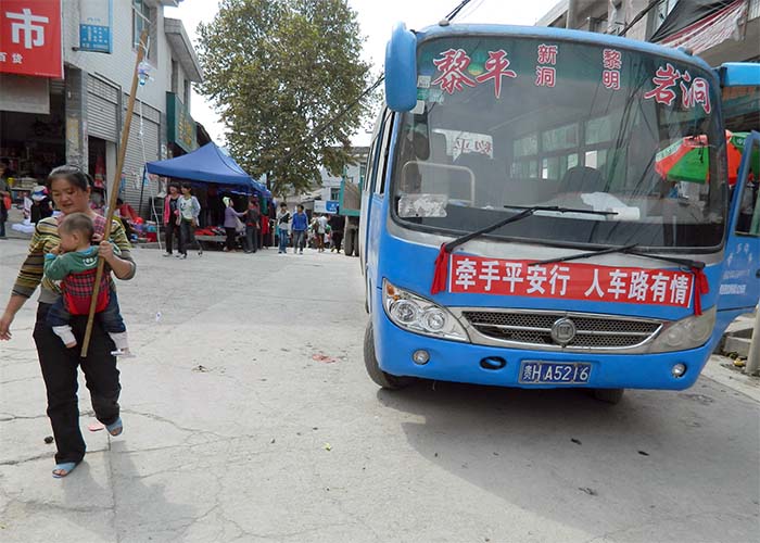 しょうがない、また黎平へ戻ろう、とバスを待つこと1時間、榕江行きのバスが先にやってきたのでそれに乗って、これも30RMB、3時間かかって榕江へ行く。 道中、景色がいいので退屈はしなかったが、この日は、バスに乗ってのドライブのみになってしまった。 |