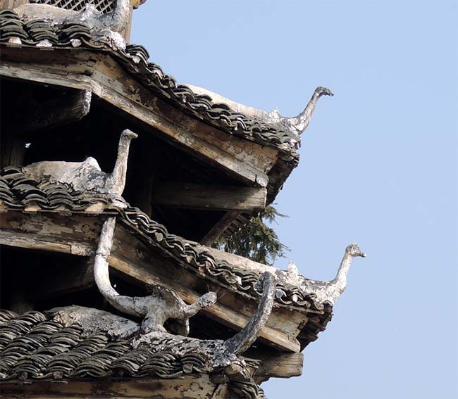 鼓楼の屋根には、「鶏」と「魚の尾」。 |