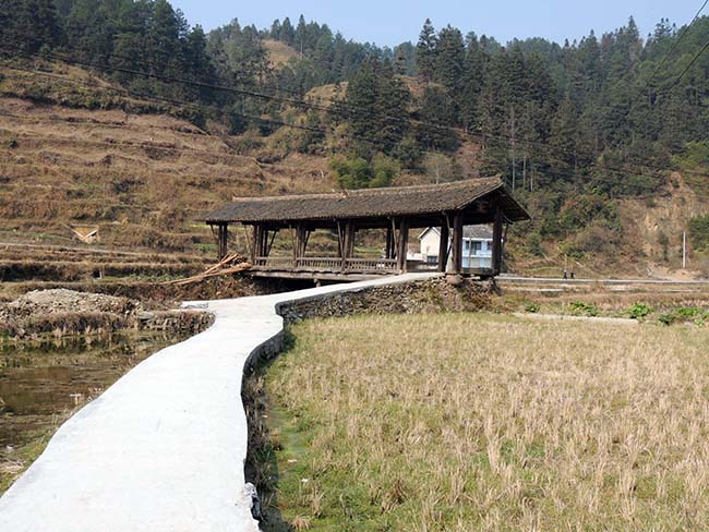 村はずれに簡素な風雨橋があった。 |