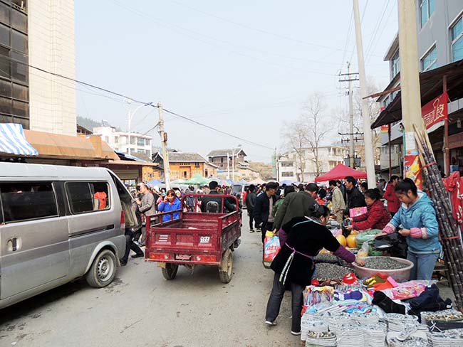 街は春節を控えて市がたち賑わっていた。 |