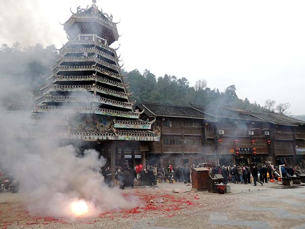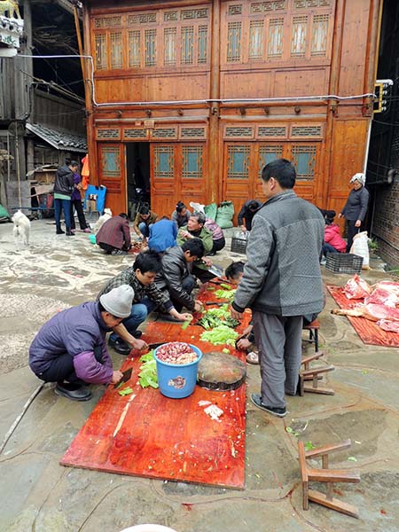 智団鼓楼の前でも宴会が開かれていて、こちらでも結婚式があったようだ。 |