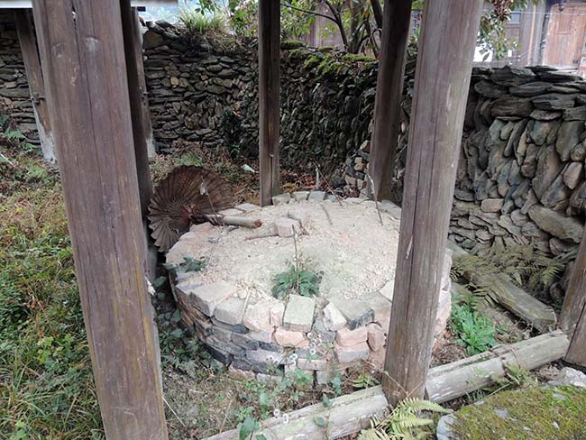 堂安へ登る途中にある石橋には、祀った跡があった。 |