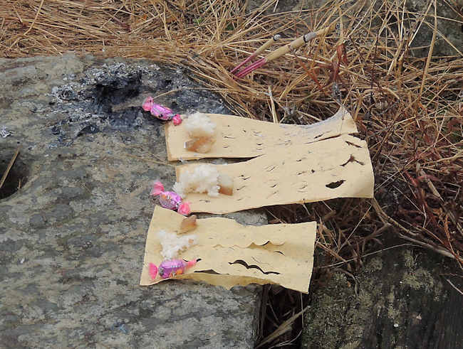 萨玛を祭る神事で奉げられるお茶や餅米など。 |