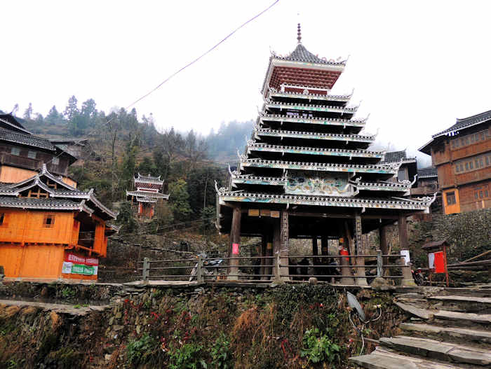 堂安には11時ごろ到着。 鼓楼の左側に見えるのが萨玛祠。 |