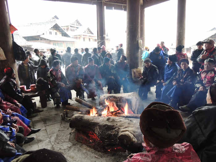 15時ごろから着飾った長老たちが鼓楼に集まってきた。 |