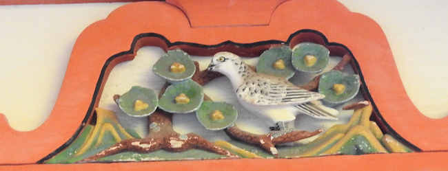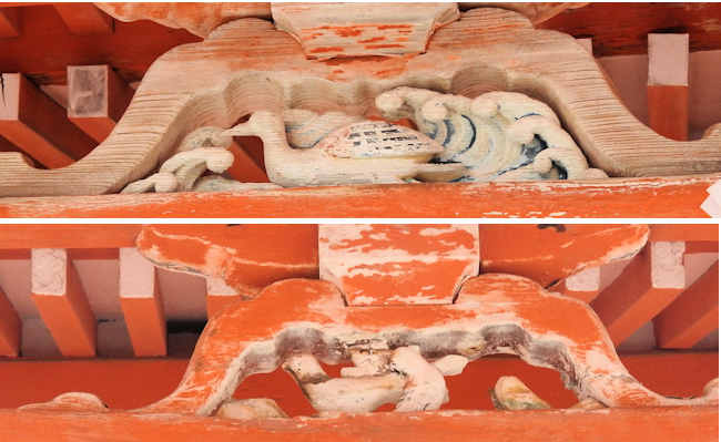 それぞれの正面の蟇股には、「鳥」があしらわれている。 |