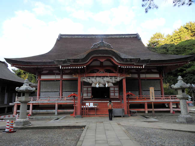 そして、正面に天照大御神を祀る「日沉宮(ひしずみのみや)」の拝殿。 ここで参拝。 ここは、普通二礼二拍手一礼。 |
