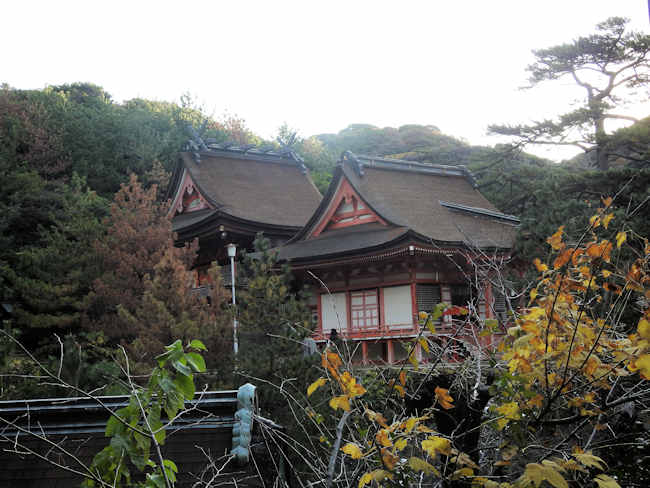 本殿右の山側に、末社の「韓國社」があり、素戔嗚尊とその子、五十猛尊を祀る。 やはり、素戔嗚尊は韓國からやってきたんだなあ、と思う。 |