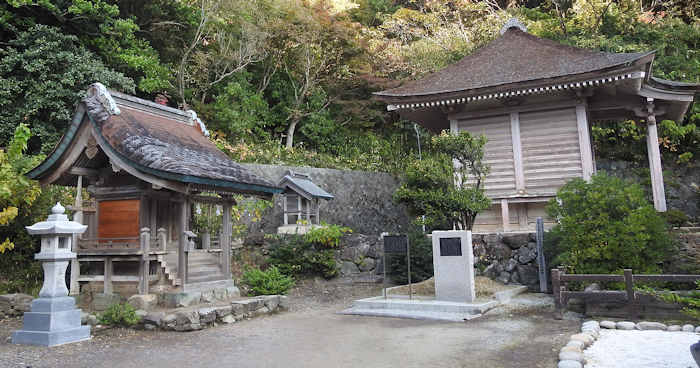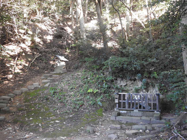 洞窟の入り口には小さな社が祀ってあった。 |