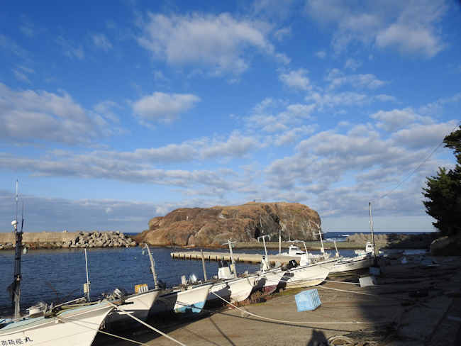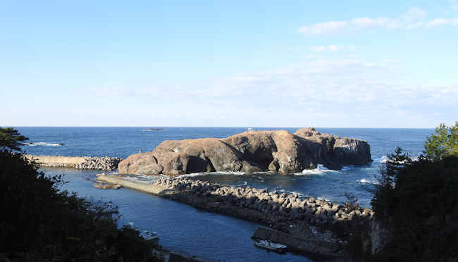 経島はウミネコの繁殖地になっているそうだが、この季節には一羽も見ることができなかった。 |