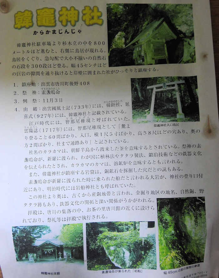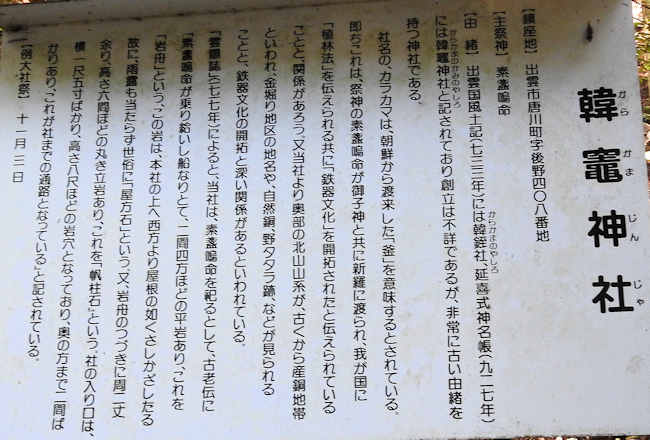 ここにも韓竈神社の由緒書があった。 |