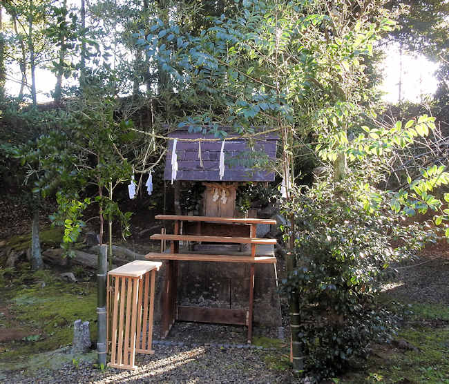八幡社の社殿の横奥に、大元神社があり、この日の神事のために、竹などで飾り付けされていた。 |