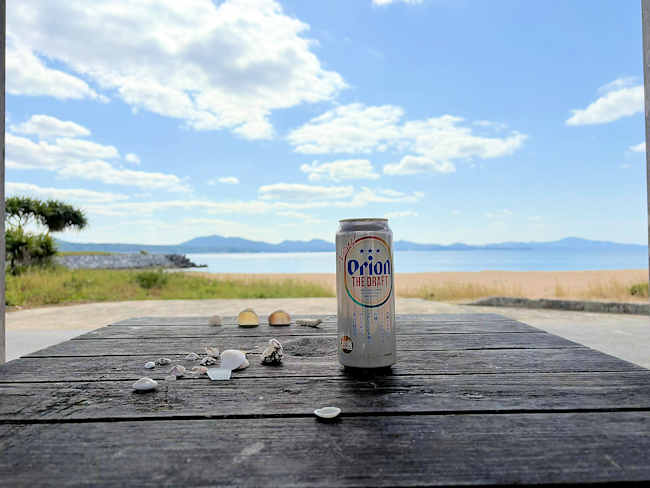 ホテルの目の前が名護ビーチなので、コンビニでビールを買って、海岸でのんびりする。 |