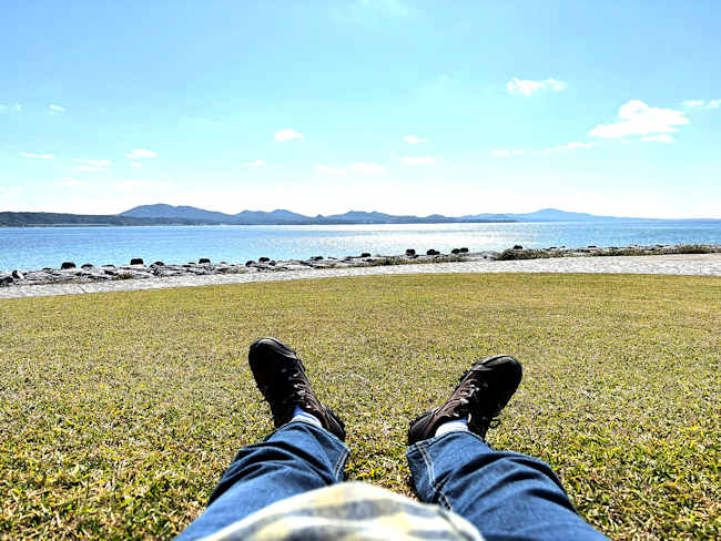 ビーチは公園になっていて、芝生の岬もあり、そこで横になったらしばらく眠ってしまった。 |
