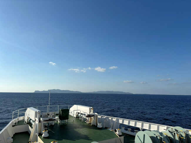 2時間ほどして久米島が見えてきて、あと1時間、どんどん島影が近くなってくる。 |