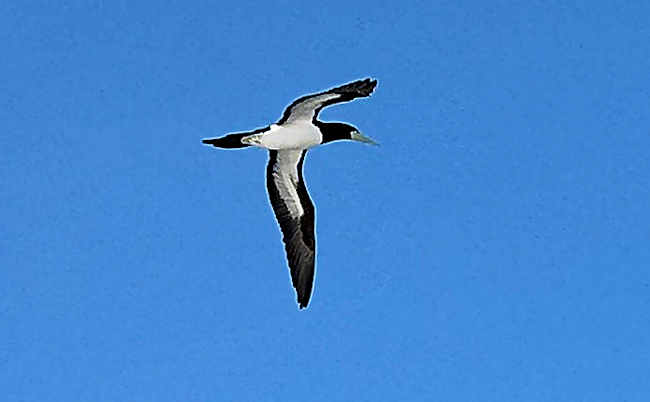 久米島と渡名喜島の間の海域は冬の時期クジラが回遊してくるそうで 、この日も遠くでクジラが潮を吹くのは見えたがその姿は見ることができなかった。 そして、カツオドリが1羽現れ、島に近づくにつれ1羽、1羽と数が増えていった。 船で来て良かった、と思う。 |