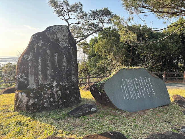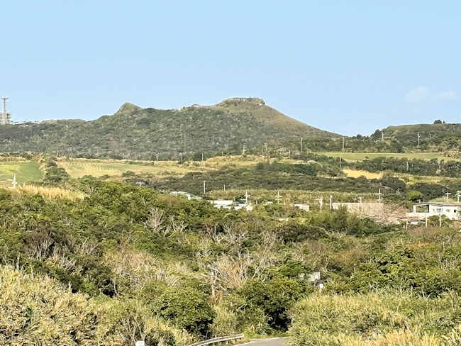 | 宇江城城跡(うえぐすくじょうあと)は、2月2日に文化スポット巡りをした時に訪れたが、その日は曇りで北東風が強く寒くなり、この城跡のてっぺんまで行くと猛烈な風でのんびり風景を楽しむ余裕がなかったので、天気のいい13日に再訪した。 |