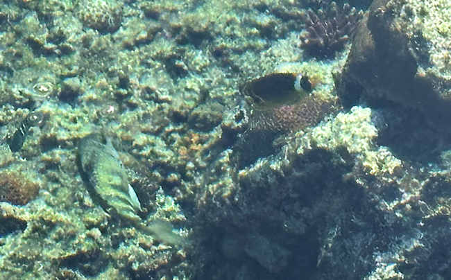 2月でまだ寒いしお魚もいないだろうなあ、と思ったが、潮だまりを覗きに行くと、コバルトスズメやチョウチョウウオ、オヤビッチャなどが泳いでいる。 これから暖かくなって、スノーケリングをするのが楽しみだ。 |