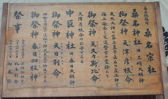 拝殿には賽銭箱が二つあり、桑名の産土神、天津彦命と天久々斯比命を祀る桑名神社と中臣神社が並んで祀られている。
